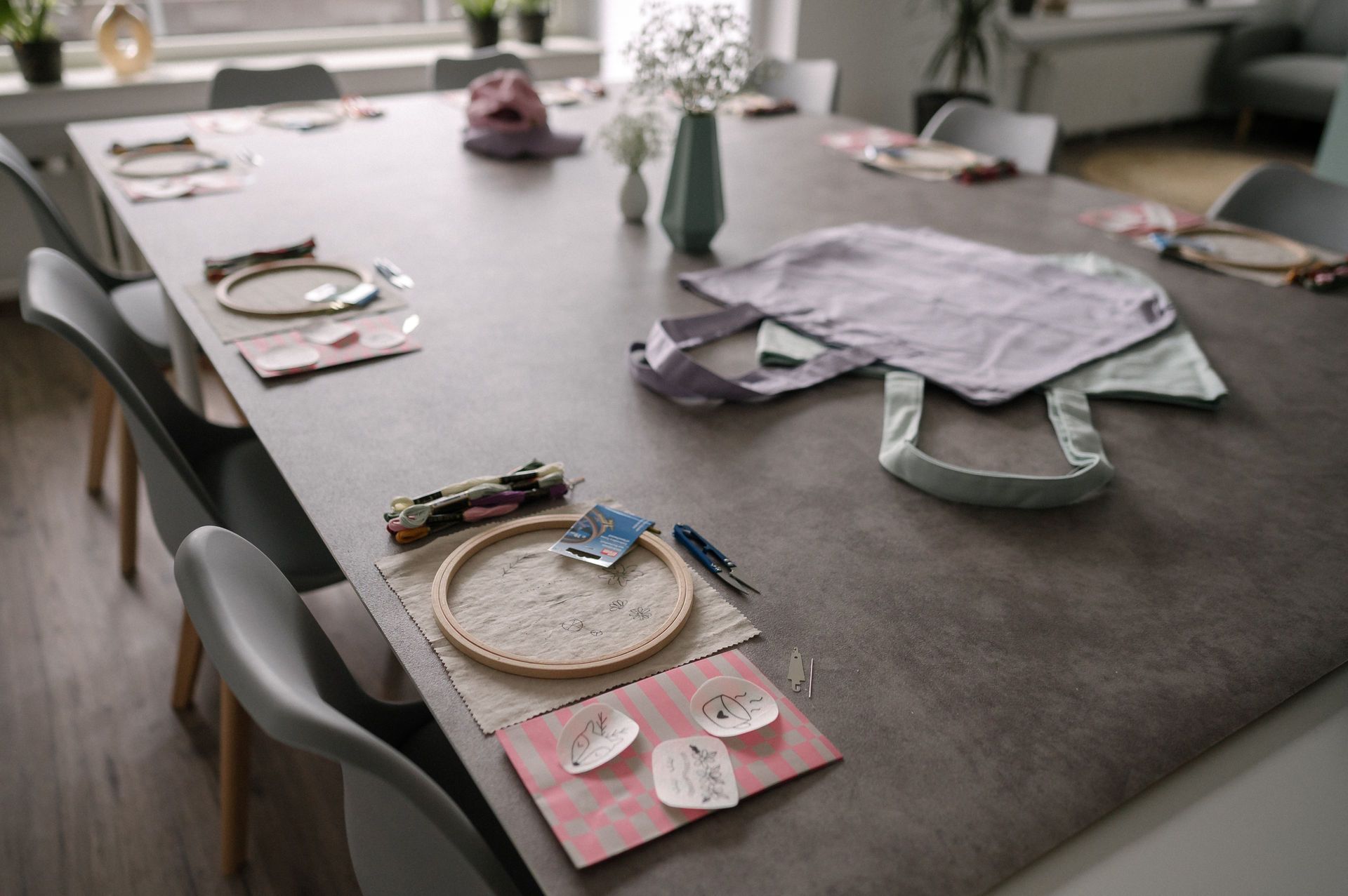 Hier kannst du dem Alltag entfliehen und deiner Kreativität freien Lauf lassen. Ob bei einem Stick-Workshop oder einer entspannten Keramik-Malerei-Session – nimm dir eine Auszeit und gestalte etwas Einzigartiges in einer gemütlichen Atmosphäre. Egal ob Anfänger oder Fortgeschrittene, wir freuen uns darauf, gemeinsam mit dir kreative Momente zu erleben.